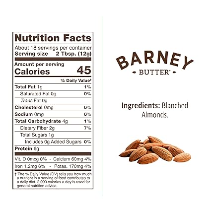 Got this to replace the powdered peanut butter – can no longer have peanuts. The two products are not quite the same. This is salt and sugar free – which is fine if you just want to add to a shake or on your oatmeal. But to mix for a PBJ it is a bit lacking in flavor and appearance. It looked more like paper mache and kind of tasted like it too lol. I have since added sweetner and some salt to what is left in my container (upon the advice of someone). Hoping that will help some. I will continue to use though for oatmeal and shakes if nothing else. I do love Barney products – esp the creamy almond butter- so yummy!!