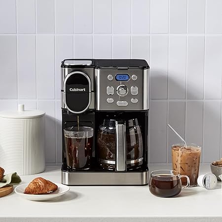 - SINGLE-SERVE: Enjoy five serving sizes – 4 ounces, 6 ounces, 8 ounces, 10 ounces or 12 ounces – compatible with any brand of single cup pod including Keurig K-Cup pods with an optional reusable filter cup so you can use your own coffee through our HomeBarista elite Cuisinart features – pour it over ice for a cool coffee treat.Filter type:Reusable