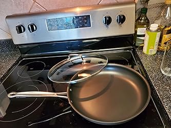 But the handle on the glass cover gets hot and one needs to grab a pot holder every time something needs to be added. I had been using an old cover with an insulated handle and forgot about this problem. If I had remembered, I probably would not have bought the skillet.