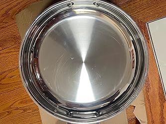 This is such a nice pan, heavy duty, beautifully finished, and it will last a lifetime! Also, it cooks food noticeably quicker than my smaller Cuisinart pan. It would be nice if it came with a lid, but that was easy to find for a reasonable cost.