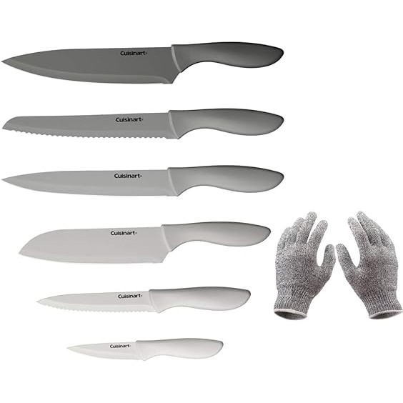 - BUNDLE INCLUDES: Cuisinart Advantage 12-Piece Gray Knife Set with Blade Guards – Deco Gear Food Grade Kitchen Protective Gloves