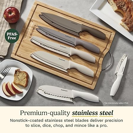 - LIFETIME WARRANTY: The PFAS-free* Cuisinart Advantage nonstick coated cutlery knife set comes with a limited lifetime warranty. (*No intentionally added PFAS.)