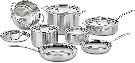 - Product 1: SET INCLUDES: 1.5 Quart saucepan with cover, 3 Quart saucepan with cover, 3.5 Quart sauté pan with helper handle and cover, 8 Quart stockpot with cover, 8″ skillet, 10″ skillet, 20cm steamer insert with cover
