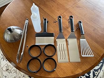 I’ve used most of the tools in this kit. The dome is tiny and only suitable for melting cheese on one burger at a time. The two long spatulas are top-notch. Also, the fish flipper is perfect for the task. The scrapper works great as well. Overall, a nice little griddle set.