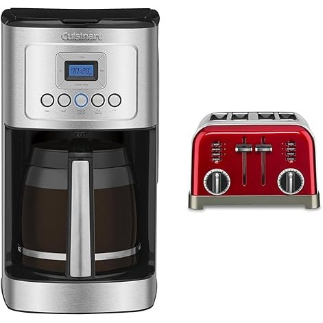 Cuisinart 14-Cup Coffee Maker with Glass Carafe and Brew Control Cuisinart Classic 4-Slice Toaster in Metallic Red for Perfect Toast