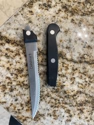 I bought these to replace a few knives from a Cuisinart set I got about 5 years ago. Due to heavy use the blades were in need of professional sharpening, but it was just as easy – and cost effective – to buy a new set which included my favorites. I wish the handles on the serrated steak knives were a little thicker, but they work just fine.
