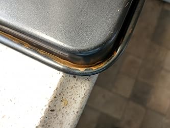 The pan is great but don’t wash and just put it away. It will rust in the seams where the metal curls over. I have to hand wash and air dry it before putting it away. It is a great pan, doesn’t warp, doesn’t allow things to stick to it but you better let it air dry with the bottom on a mat so water doesn’t stay in the seam.