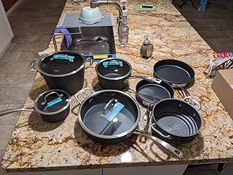 OMGOODNESS! I have looked high and low for quality cookware and I found it with this set!!! I spent weeks researching for the perfect set that would work best for me and here it is! I was looking for the shape of the surface of the cookware, I was looking for the metal it was made of, I was looking for whether or not I was able to use it in the oven and the stove top. I was looking for non-stick, easy to clean, not prone to warping, even heating surface, etc. This set hit all my qualifications I was needing. I cannot tell you how GREAT this set is, words cannot describe it. I am sooooooo happy and excited that I finally, after 45 years of buying, have found the PERFECT set of cookware.