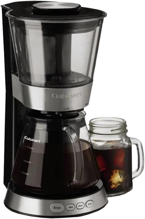 - 7-cup glass carafe with removable stainless steel filter lid makes ready-to-drink cold brew Coffee in as little as 25-45 minutes