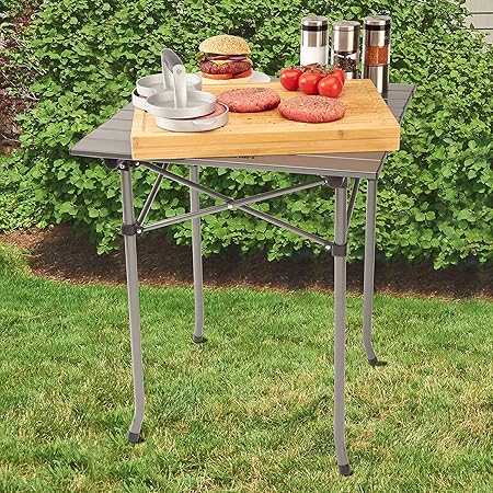 Love this table. Able to fold up for storage. Perfect size for my tabletop bbq.