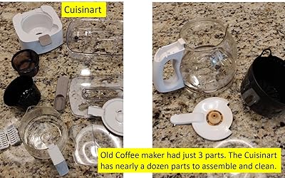 Lid is NOT hinged to lift when you pour so every time I pour, some spills out on counter!! controls blink forever but don’t let you know if it is on or off until you can actually hear a drip!! really confusing to use and you have to go online to get complete instructions!! thank goodness I kept inexpensive Black and Decker 5 cup coffee maker!!