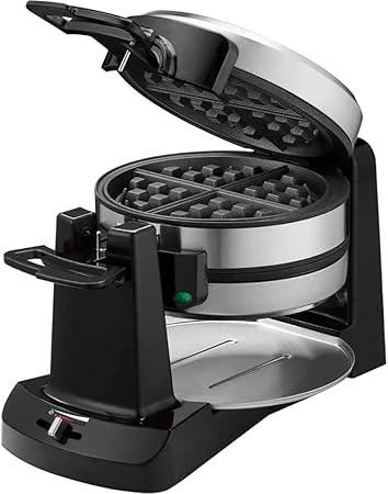 This waffle maker is just what’s needed if you want to eat together with someone else. The single version means each person eats alone or need too keep waffles warm or heat up later. This one removes that situation. It makes an evenly cooked and toadyed appearance and evenly cooked inside. No sticking problem ( I put butter on it) to give it a crisper look and texture and really appreciate the heat adjustment abilitiy that performs well. Takes about 6 minutes to cook at medium heat and the fact you can fill on side and very easily flip it over and fill the other side I really like Hasn’t burnt me yet also. Hahaha