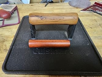 The best feature is the handle (weight is great too). The handle stays are part of the casting (handle is wood of course) and not, one of those “screw-on” versions seen on many other griddle weights.