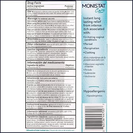 - Contains 1 pack of Monistat Instant Itch Relief Cream; each tube contains 1 oz of vaginal cream