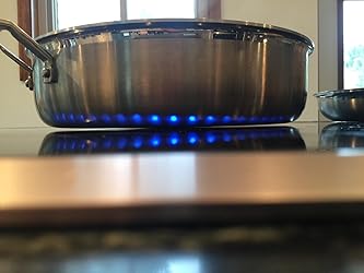 We bought a set of Cuisinart pots and pans to work with our induction cooktop, and then bought this larger pan separately. The rest are fine, but this pan has a convex bottom. Only touching in one spot is obviously not ideal when your burner only heats where the metal makes contact. We contacted Cuisinart to have this replaced under warranty, and have not gotten a response. We’ll keep trying and I’ll update this if they ever get back to us. Update: We finally received a response to our warranty claim, saying simply they would send out a replacement. The new pan sits perfectly flat on the cooktop, as it should. Updating rating to 4 stars (minus one for sending me a defective one to begin with).