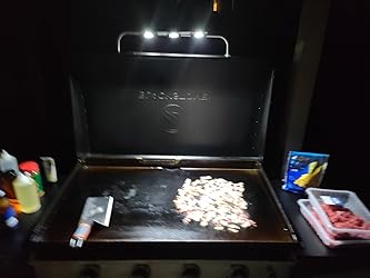 First time using on my Blackstone. I shut off all the lights so I was in the dark and it put off plenty of light for my 36 inch griddle. Not sure about the waterproof but not a pin concern of mine. So far I recommend it