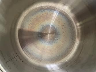 Washed the pots & pans by hand before using them as recommended by Cusinart. After using one pot and one pan I noticed that after washing them by hand the pot discolored on the inside and the pan has some kind of water mark. I did not use a scrubbing pad. You can see from the first photo that the pots & pans came all shiny and the other two photos not so good. Wonder what they all will look like after repeated use if this happened when only using them once. Going to try and contact Cusinart. My first new set of pots since 1974. I am very disappointed!