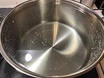 I have an older Amway Queen cookware set that I've had for a long time that is serving me well but every now and then when I want to make a big pot of chili beans, spaghetti, stew, or the like, my old 6qt pot is just not big enough. So I got this monster given it certainly has the extra capacity I need to make something bigger and have plenty of room to combine all the ingredients thoroughly without spilling over. Once I unboxed the Chefs Classic pot I noticed a few things immediately. 1. The finish was nice and shiny. 2. It was a lot lighter than I expected given it's size. 3. The laser etched capacity markings inside the pot are nice. 4. It fit my burner perfectly with no overhang. 5. The walls were awful thin at 1mm and not magnetic but has a thick bottom that is magnetic. 6. it is tall enough that I have to invert the lid to fit it in my cupboard. So the maiden voyage for this pot was to make a batch of my killer spaghetti. What I found while using the Chefs Classic pot is that I had to turn down the heat more than normal when making the 6qt's of marinara as it was getting hotter on the bottom of the pot than my old pot does since this pot keeps all the heat on the bottom given how thin the sides are which are not conducting heat up the sides of the pot. After making the marinara and later adding the meat and pasta, this pot had plenty of room to spare but did seem like it would be easy to scorch food in it if you were not careful. I know Cuisinart has a multi-clad version of this pot as well so I located one at another online retailer for $125.99. I know, more than twice the cost of this one but does that buy a better pot that really performs better? Time to find out. After unboxing the Cuisinart MultiClad Pro Stockpot I made similar observations: 1. Brushed finish instead of smooth and shiny. 2. This pot has more weight to it compared to the Chefs Classic. 3. This pot is shorter but has a larger diameter that slightly overhangs my burners. 4. The walls on this pot are 3 times thicker at 3mm and magnetic as is the bottom. 5. This is much more like my existing cookware. 6. Fits in my cupboard with no issues. Another interesting observation was the weight of each pot with the lids. 1. Old 6qt pot - 5lbs 6oz. 2. Chefs Classic - 5lbs even. 3. Multiclad Pro - 7lbs 9oz. I decided to run a couple of simple tests to compare the performance of these two pots. As heat distribution was my main concern with the Chefs Classic, the easiest way to see this without a lot of fancy equipment such as a multichannel thermocouple datalogger and a FLIR camera was to simply boil some water (at two different levels) in both pots at the same time while setting both burners at the same power. My stove is the typical radiant heat flat top with two 9" burners on the front and a couple 6" in the back. For the first test, I put a gallon of equal temperature cold water in each pot, made sure they were both properly centered on the burners while setting their power to 50% so I could monitor the water temperature rise and water vapor bubble formation to indicate heat distribution. The first observation made was that both pots evenly rose the water temperature to 150F. The Chefs Classic was clearly showing much more concentration of water vapor bubble formation on the bottom and not on the sides. Also the side of the pot above the water level remained cool indicating low thermal conduction for the sides of the pot. The Multiclad Pro was showing much more even distribution of water vapor bubble formation on the bottom and on the sides. It was also very warm to the touch all the way up the side of the pot indicating high thermal conduction for the sides of the pot. After 150F, the Chefs Classic took the water temperature lead by ten degrees before the water started boiling. I can only surmise that was because it was keeping the heat down low and not dissipating more heat to the air like the Multiclad Pro was. Either way, the Chefs Classic won the first to boil a gallon of water race but it was clear the bottom was heating up much more than the sides of the pot was. I did allow both pots to cool and repeated the test with swapped positions to eliminate burner power level inconsistencies and the results were the same. For the second test I wanted to torture the pots so I filled both with 2.5 gallons of cold water of equal temperature and set both burners to full power. The same observation of both pots reaching 150F was made and surprisingly since all this water was conducting the heat up from the bottom of the pots, both were showing very even distribution of water vapor bubble formation on the bottom and on the sides. What was surprising though was as the temperature rose further, the Multiclad Pro jumped ahead of the Chefs Classic by 10 degrees by the time 212F was hit allowing it to come to a full boil sooner. I do believe that once the temperature rose past 150F the Multiclad Pro was able to sink more heat into the water faster due to the sides conducting more heat allowing more thermal surface area to come into contact with the water. Again the test was repeated with the pots on the opposite burners with the same results observed. Neither pots showed any warping of the bottom surface after these tests. However, I did see the sides of the Chefs Classic deform a bit at the handle rivet locations while carrying the pot completely full of water due to the thin side wall construction. The Multiclad Pro did not exhibit the same behavior with its significantly thicker sides construction. I would love to repeat this test on both gas and induction just to be sure but from what I see the Chefs Classic is a darn nice pot when using it filled up more than half with liquid to promote better thermal performance throughout the pot beyond the bottom. With as little as a gallon of liquid, it does show degraded thermal performance as the bottom heats quickly while the sides do not which could lead to accidental scorching of food if