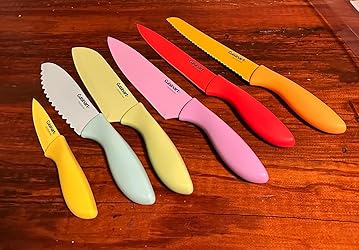They are not only actually sharp knives but they also are great looking! I love the colors and the sheaths for each one. I have some, that I use all the time out in a holder and the others are safely in a drawer in their sheaths. I bought them for myself to update my kitchen gear, but they would also make a great gift. Functional and really cute at the same time.