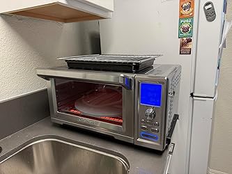 I’m absolutely amazed by the simple yet elegant design of the Cuisinart Convection Toaster Oven Model: TOB-260N1. It cooked my $3 store bought frozen pizza to absolute perfection, with a beautifully even bake that left the crust crispy and the toppings deliciously melted. The see-through door is a fantastic feature, allowing me to monitor my food without opening it and losing heat. The quick preheating time is a game-changer, saving me valuable time in my busy kitchen. This compact, stainless steel appliance is a must-have for anyone looking for a reliable and efficient cooking tool. Highly recommend it—5 stars all the way!