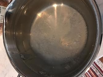 Looks like the handle rivets are not made from steel and have been leaching metal or something too our food. You can test this easily by filling the pot with water up to and above the rivets, boil it and set it aside for a day or so. You'll start seeing white sediments form around the rivets. Attached is a picture of our pot which I left aside for a month covered. You can see the extent of the leaching and is not something that will go away with a couple of uses/clean cycles.